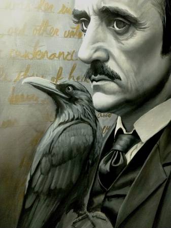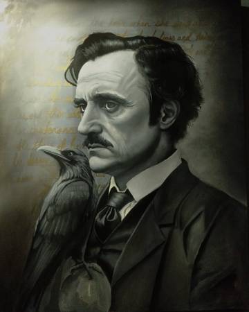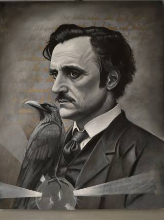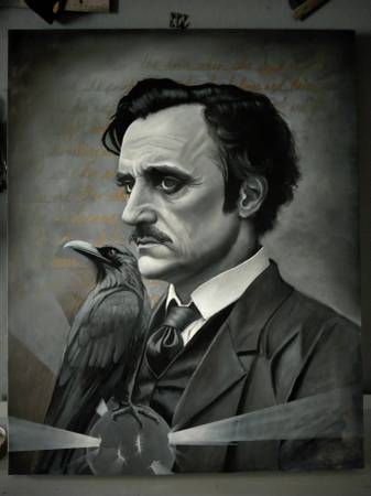 24x30 Stretched canvas oil painting of macabre poet Edgar Allan Poe. 2" thick canvas.