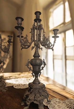 2 Matching Bronze Candelabras with 5-arm candle holders