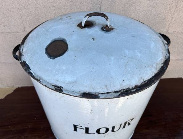 Antique Enamel Flour Bin
