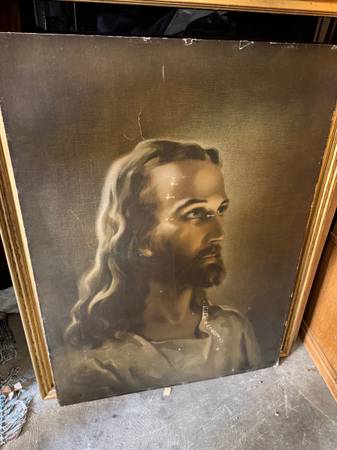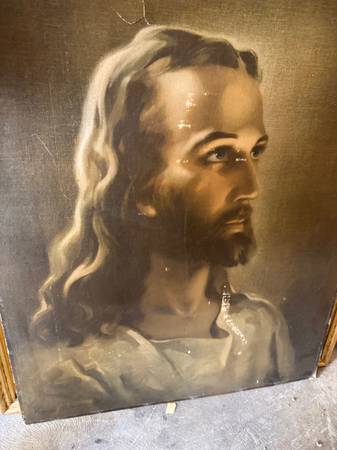 Extra Large, 4 Foot Tall 1940S Era Lithograph Of Jesus Christ Framed Artist Solomon Size 33.5x44.5in