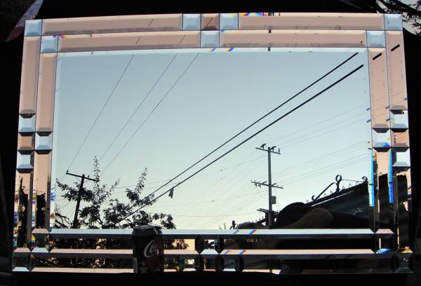 Up for sale is this gorgeous postmodern 2 tone clear and copper color wall mirror from early 1980's. This beauty is comprised of the big middle section and 39 square and rectangular pieces, all of which are beveled. It is very well made and a little heavy. Looks fantastic and especially at home in a mid-century decor setting. Copper colored mirrors are very rare and hard to come by. If interested, please send reply email and make sure to include your phone # to get a response. If you see this ad, then item still available. No hagglers. Cash only.