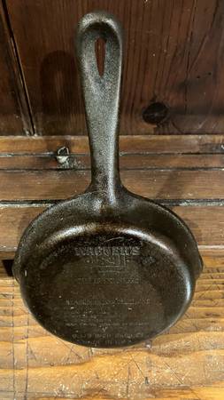 VINTAGE WAGNER 1891 ORIGINAL SKILLET #3 POURER SPOUT ON BOTH SIDES. BOTTOM READS SEASONING INSTRUCTIONS MADE IN USA. RARE 6 1/2 “ x1 1/2 deep x11 1/2” with handle.