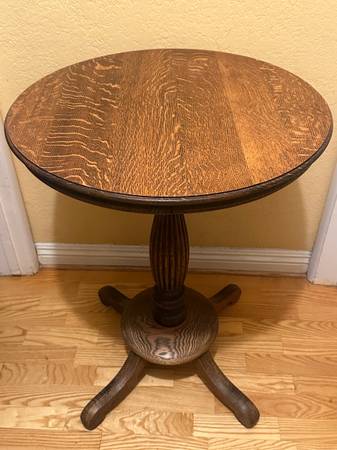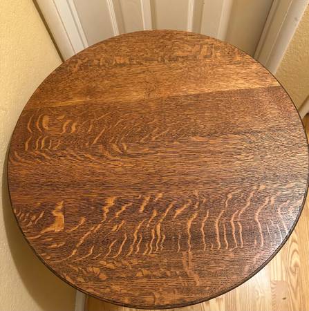 AKA…Quarter-Sawn Oak Single Pedestal Round Side Table 30.5”H x 23.5”Diameter AKA… quarter-sawn oak single pedestal round side table. Pick up Lyons & Wiley, Newhall Cross Posted