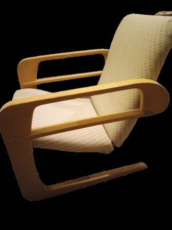 Airline Chair designed by Kem Weber ( Karl Emanuel Martin) for Walt Disney in the 1930's. Was reupholstered but can easily be changed back again to the original brown leather. Google for more info...