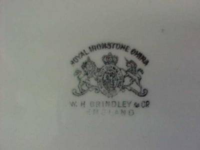 Royal Ironstone China. Made by W.H. Brindley Company. Overall 10¼" by 8". Excellent condition. Pick up only.