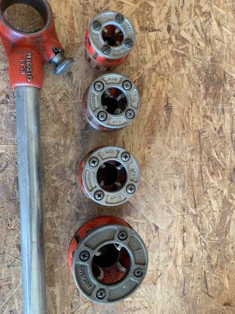 ridgid pipe threader ratchet and 4-dies 3/8” 1/2” 3/4” 1”