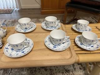 Royal Copenhagen Blue Fluted Coffee Set. Serves 6 from Denmark. Originally purchased in the 60's. One owner. Mint Condition.