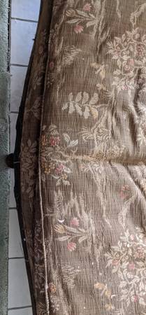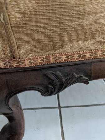 Unique 1900's Antique Sofa This unique styled feather filled antique sofa has detailed wood carvings, six (6) flared legs with nice arm rests and a curved front. This couch is in fair condition...