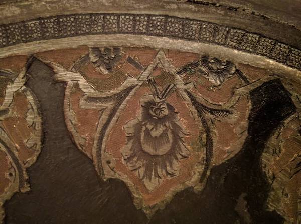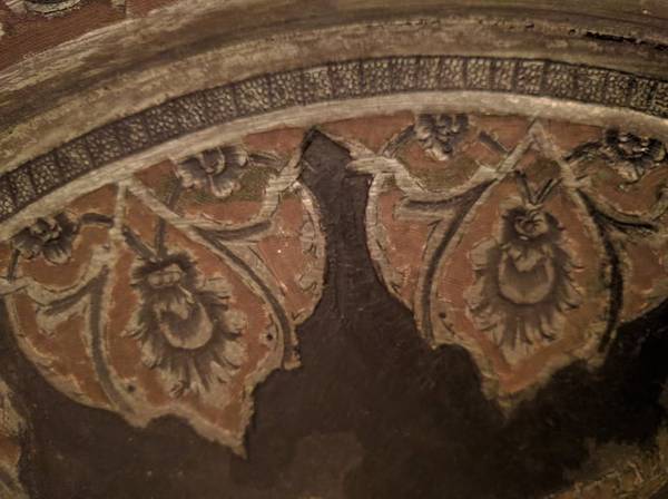 This is a wonderful Persian ornamental hand etched copper tray with a beautiful intricate design which features a romantic couple indulging in each others company and enhancing their pleasure with some wine. This tray measures approximately 19 1/2" in diameter. This tray is at least 60 years old, if not more.