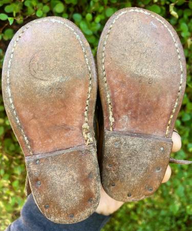 Antique ~ Vintage ~ Very Old Genuine Leather Woven Child Baby Kids Shoes Wonderful old condition as seen, great color! Come check it out in Woodland Hills Mitchell