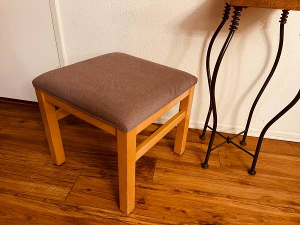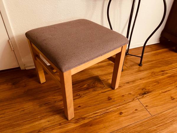 Up for sale an amazing ottoman, stool, settee solid wood w ! This will be great addition to your living room or bedroom can be used for your pet as their favorite place to relax, the bench measure 19" by 19" inch deep and the seat is 18” high, teh seats are covered in grey cooton / wool fabric this is rare unique solid piece of furniture in great condition... there are a few mini dents on the wood base but they just add charm. This stool was passed to us from my late aunt, we are currently in downsizing mode so we are looking for a new home apartment patio for this lovely settee ottoman . I sincerely Thank You for craiglisting, Lets recycle let’s reuse and let’s preserve our planet to the next generations to come. NOTE-1- pls text me 818 eight -zero - nine- 8470 Note -2- if this add is on, it means the item is available ! when it is sold I delete the add right away