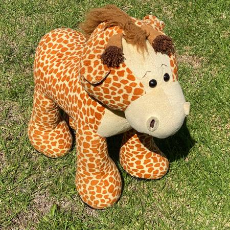 Fine Toy Company Giraffe Plush Ride On Animal Chair Soft giraffe plush animal chair in excellent condition. Designed with a steel or metal frame to be sturdy enough for a child to sit or ride on...