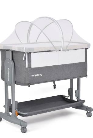 Maydolly Baby Bassinet Bedside Sleeper, 3-in-1 Bedside Crib, Portable Bassinet with Mattress & Breathable Mesh, 7 Height Adjustable Baby Bed, Newborn Infant Cribs (Grey)