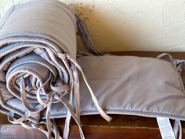 Barely used crib with mattress and cushions for the crib.