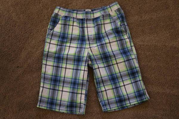 2) New! Boy Size 12 - Plaid Shorts - front pockets - Blue / Dark Blue / Gray/ Green / White