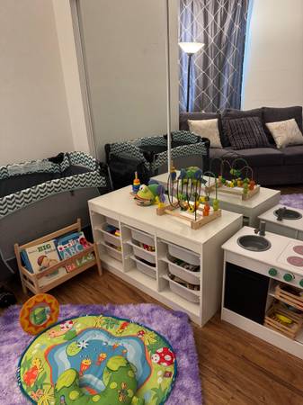 Brand new child care stuff for sale. I have 2 high chairs, changing table, a lots of toys with the cubbies organizers for toys.