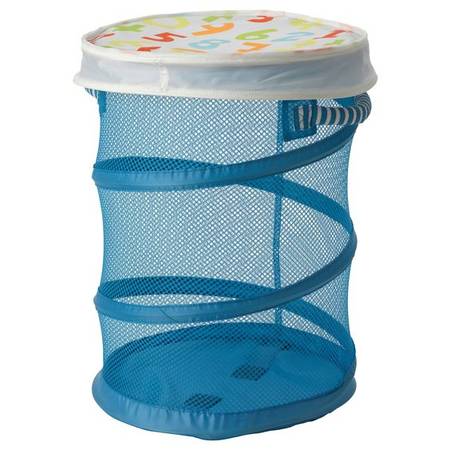 IKEA - Mesh Blue Laundry Basket -or- Toy Storage Easily Collapses down and velcro shut for storage space Tops lift on and off, and is held to the basket by a velcro tab 100% polyester Height:...