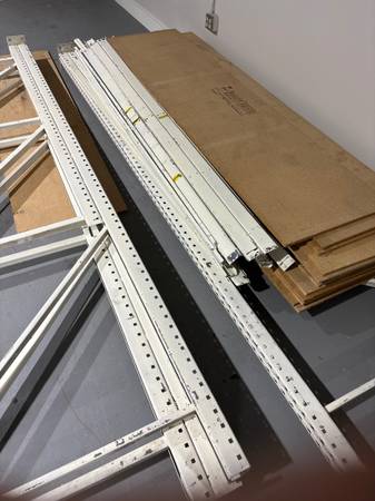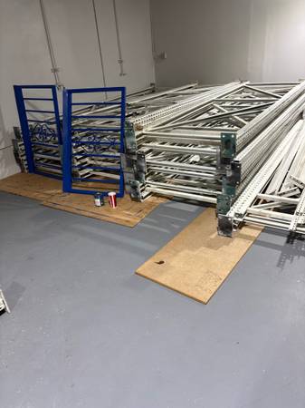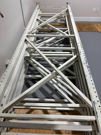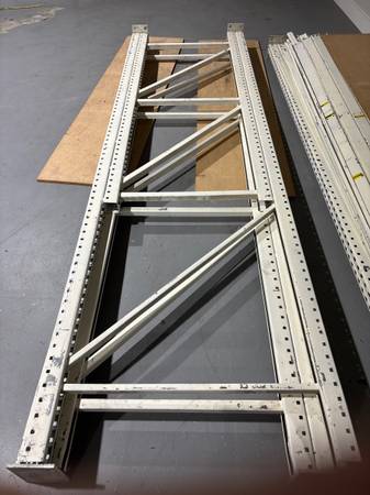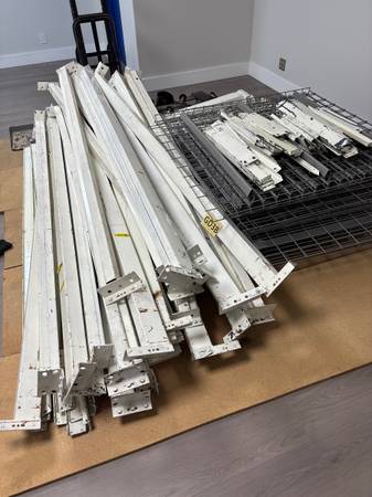 Like new industrial 12 ‘ X 3’ teardrop style pallet racks with 8’ beams and Heavy duty wire shelf racks.You will get 2 x 12 foot uprights 6 X 8 foot beams 6 wire rack shelf’s for 220 dollar 818three19one74two discount if you buy more than one set.I almost forgot CASH ONLY SCAMMERS CAN GO POUND SAND THANK YOU 👍🏻
