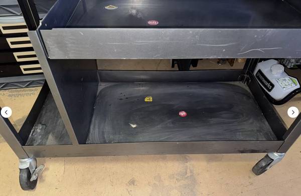 This was used to put DVDs and VHS back on the shelf. Original item from Blockbuster Video. Still has stickers from the store on it. Works and sturdy cart