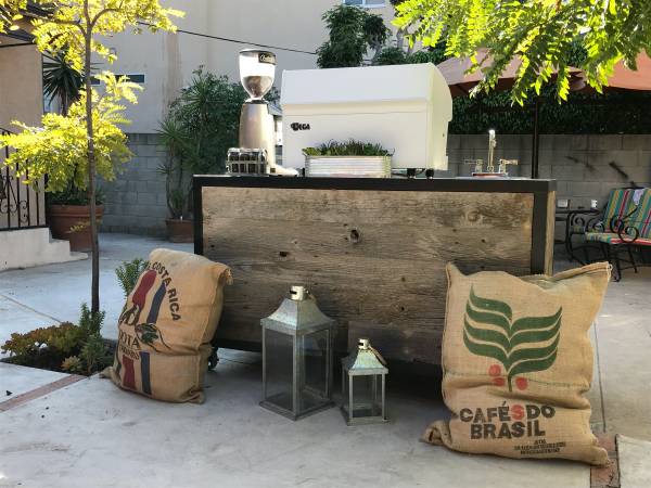 complete catering espresso cart metal frame ,wrapped with weather wood