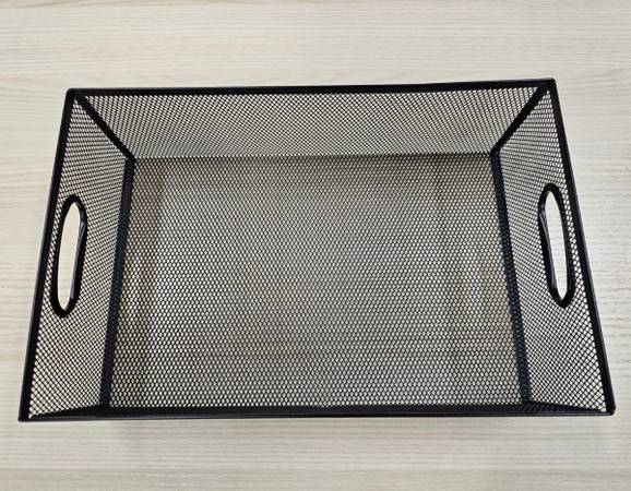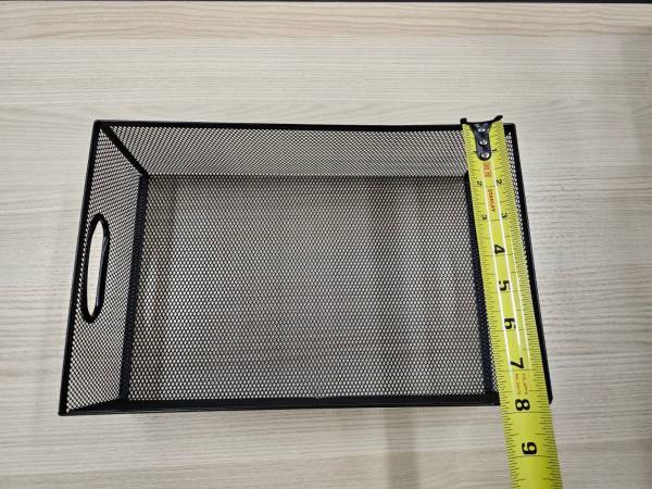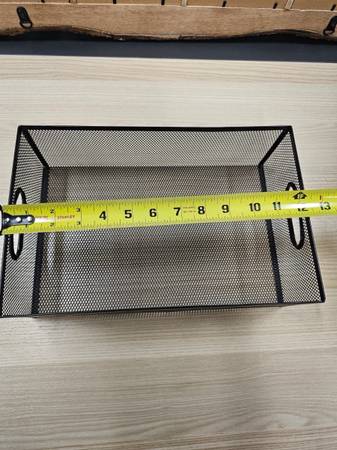 Please call Like New - Black Metal Mesh Organization Basket 7.5” W x 12.5” L 2 available for $20 each