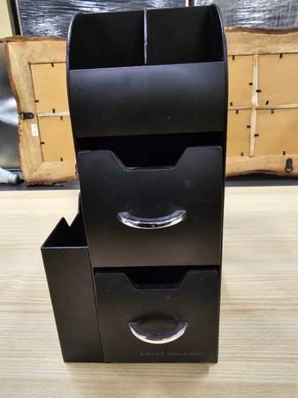 Please call Mind Reader Cup and Condiment Station Countertop Organizer, Coffee Bar Black Dimensions: 5.375"L x 12"W x 11.25"H