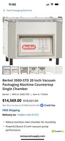 BERKEL VACUUM MACHINE COUNTERTOP 120 VOLTS. 20 INCHES. OPEN BOX NEW CALL US : RANGERS FOOD EQUIPMENT BUY. SALE TRADE NEW AND USED HABLAMOS ESPAÑOL