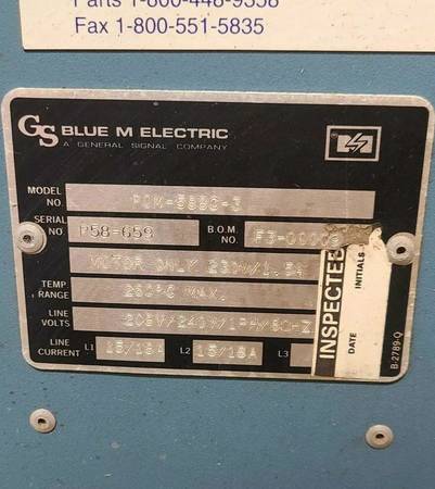 Lindberg Blue M Stabil-Therm Electric Oven Pro-Tronix II Controller POM-588C-3 BLUE M POM-588C-3 LABORATORY CONVECTION OVEN TEMP RANGE 260C / 500F B CHAMBER SIZE: 24" x 25" x 24" H