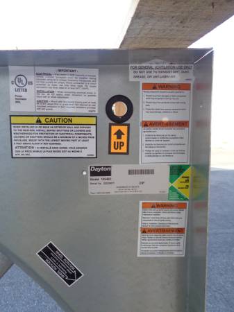 Up for sale is a new open box Dayton exhaust fan model 1AHB3. It is a new surplus item, retails for $2445, so buy here and save. Can be seen in person in Santa Clarita, CA. Please see pics and email with questions.