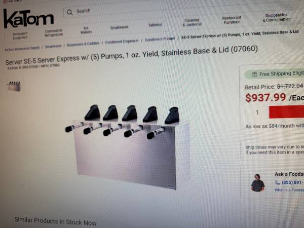 Server Slim Server Express 6 Pump Drop-In Condiment Dispenser. Our am pm convenience store used to have this but now they want us to use smaller individual condiments instead. Our loss is your gain! Compare online at $937 to $1350 plus tax and shipping! Thank you for looking and Happy Shopping!