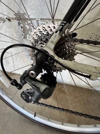 I bought the FELT frame from Books and Bikes in Culver City, it's an aluminum tube with carbon fiber front and rear forks. Shimano front crank, rear cassette, and derailer. Just needs new tubes and you're good to go! It's a great bike, rides true, never crashed or laid down, usual wear for a ~5 year old bike.