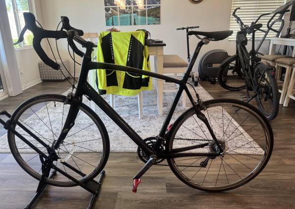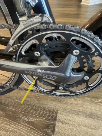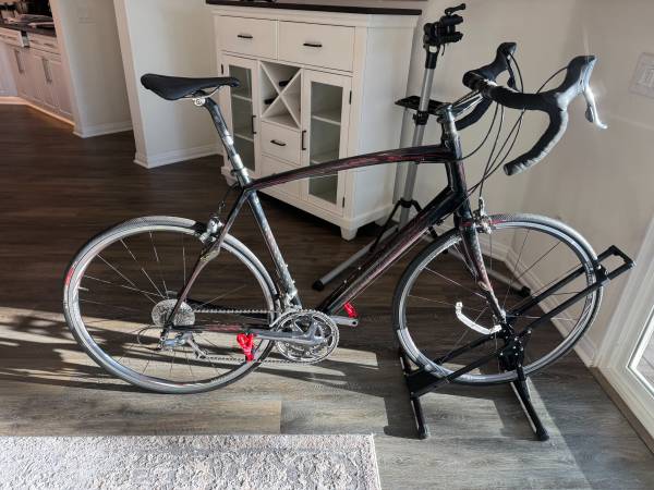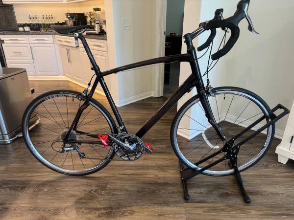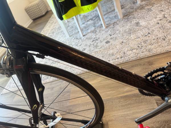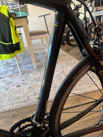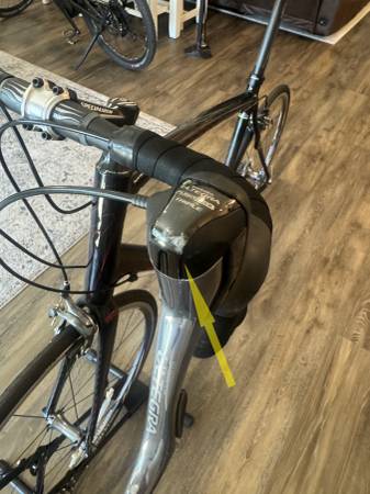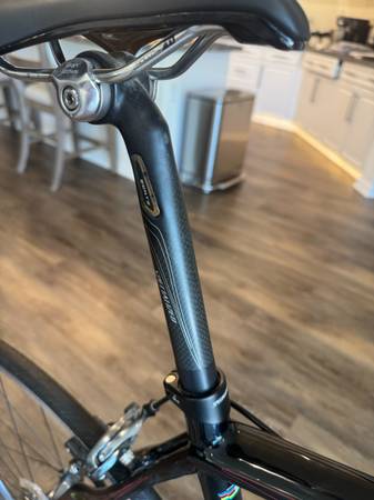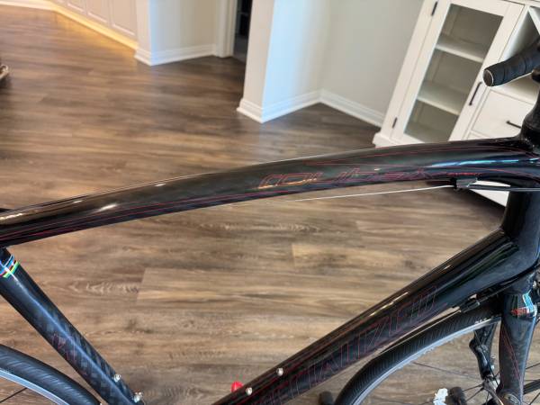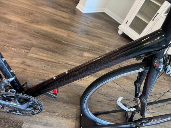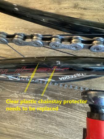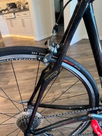 No mechanical issues. Exposed carbon fiber frame/forks/headset/seat post with red lettering