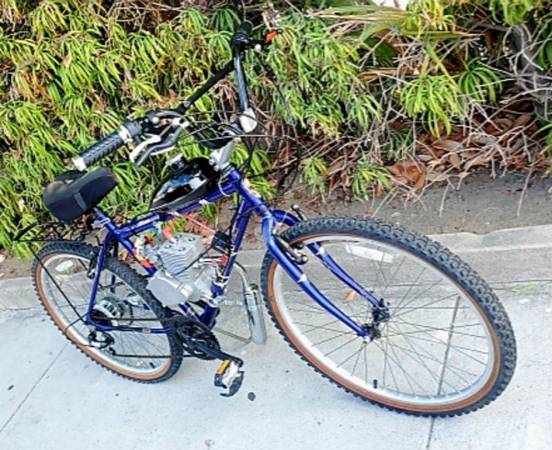 Brand new ready to ride.license is not needed.120mpg,35mph. 2stroke motor, 100cc. Gas powered. 26IN wheels. Runs good. Modified muffler, carb, piston, etc for best performance. NO TRADES NO DELIVERY...