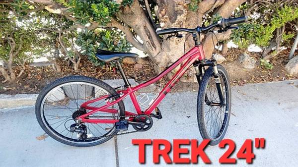 TREK Precaliber 24 7-Speed Suspension is a versatile bike built for adventurers who love riding off the pavement and into the dirt. It has a sturdy yet light aluminum frame with a performance suspension fork and an 7-speed drivetrain perfect for riding home, zipping through the woods and riding trails and paths with family. Great between 51-59˝ tall.