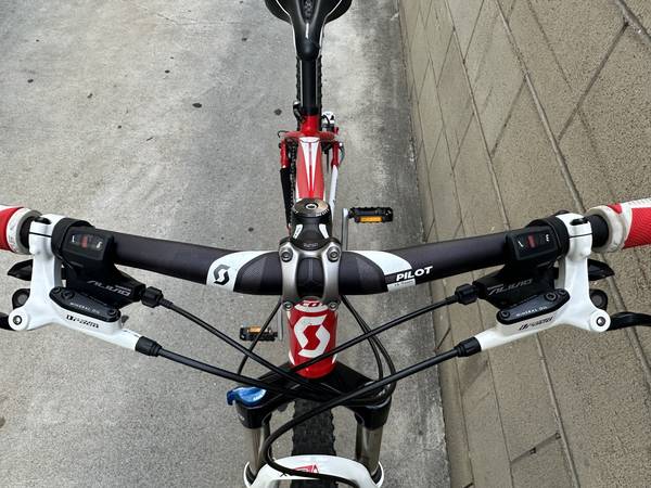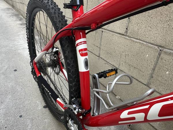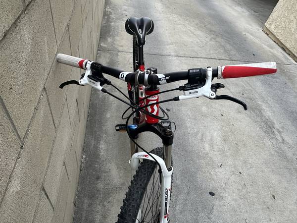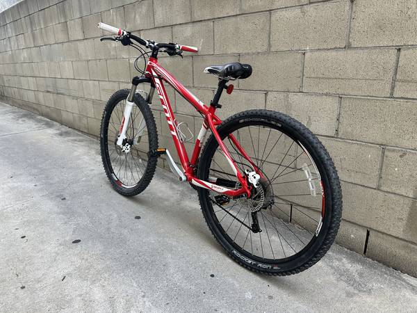 Up for grabs is my Scott Scale 29" Comp Hardtail mountain bike. With it's unique White & Red Frame color, 29" XC 49 Alex wheels, Shimano SLX rear derailleur, Shimano Alivio shifting mechanism, Medium size 6061 alloy frame is perfect for a weekend cruise through the mountains.