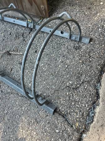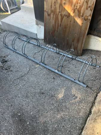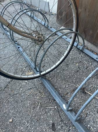 Vintage School/Playground/Park bicycle rack. All steel construction. Has spaces for 6 bikes. 8 ft. long. 21 inches wide. I remember these at school in the 70s and early 80s. These are quite rare and exceptionally hard to find. Most of these were scrapped for metal value when removed. Can be bolted down if desired. $250. Call or text show contact info