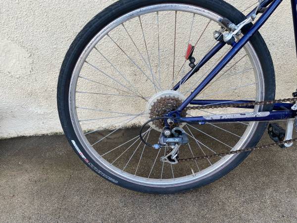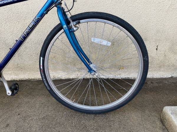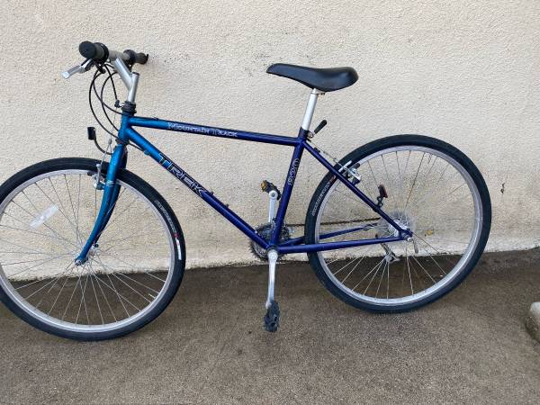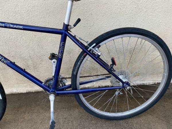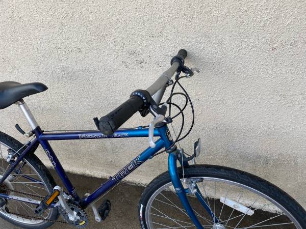 Hi I’m selling a Trek mountain track 820 16 1/2 inch frame 21 speed 26 inch wheels specialized nimbus tires wheels spins straight I taped up both shifters coz it’s weathered out it still works and front gear would shift to 1st and 2nd gears it won’t go the highest gears but still rides very smooth if interested call me at show contact info