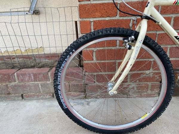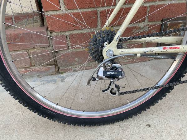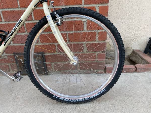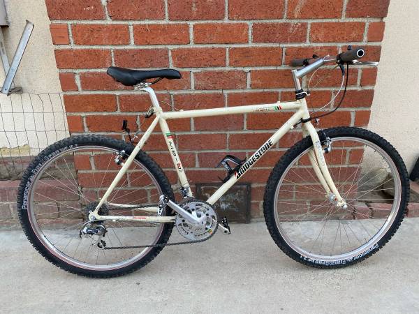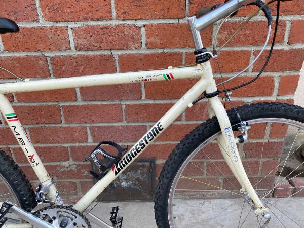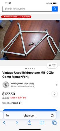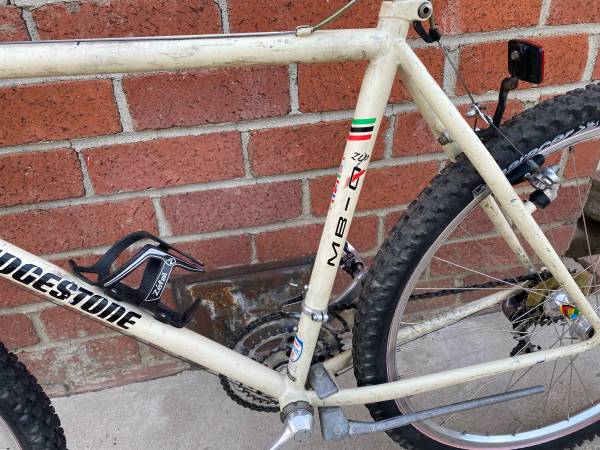 Hi I’m selling a vintage 1991 Bridgestone MB-0 zip comp 26 inch wheels 20 inch frame 21 speed all original except tires and seat ritchey equip with mavic and suntour xc very rare bike rear derailleur cable needs replacing thats all I included a photo that I took recently on eBay what the bid is for frame and fork only if interested call me at show contact info