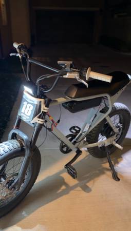 UPGRADES: passenger pegs upgrading brakes surron throttle (instead of thumb throttle) white motocutz plate ($60 plate) plate decal baja and rock light with switch cable management done already painted