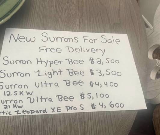 Surron Hyper Bee $2,500 Surron Light Bee $3,500 Surron Ultra Bee 12.5 KW $4,400 Surron Ultra Bee 21 KW $5,100 Artic Leopard XE Pro S $4,600 Free Delivery All New! 0 Miles!