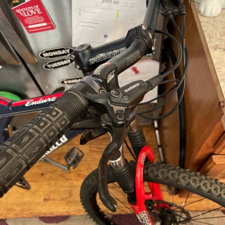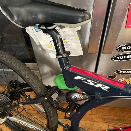 Specialized FSR enduro comp mountain bike Size medium. Measures 18” center to top with a 21.75” effective top tube and 28” standover Wheels upgraded to LOCO heavy duty wheelset. Shimano lx shifters,...