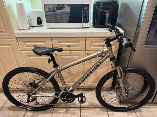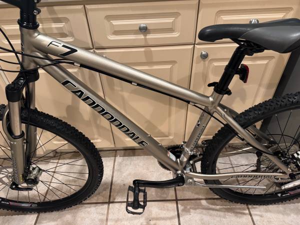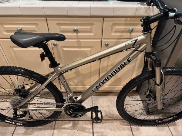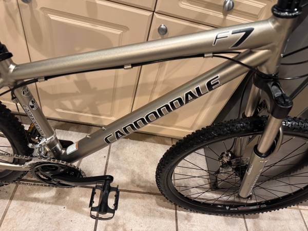 Up for sale is a nice Cannondale F7 aluminum mountain bicycle in like new condition. -M - 17” frame size, 24 speed, good quality Shimano components, RST forks, Shimano Disc brakes, CST Caballero 26 x 2.0 tires and WTB wheelset.