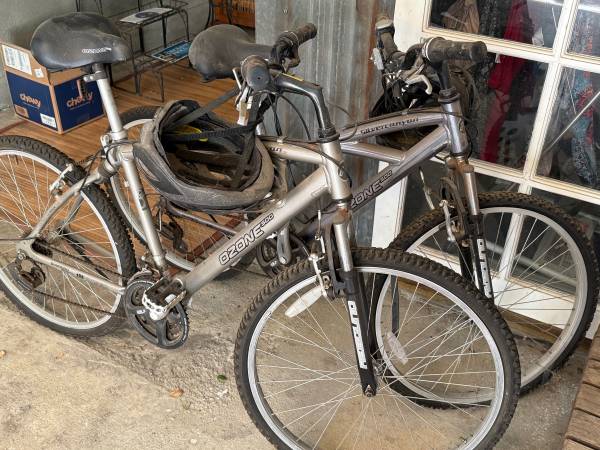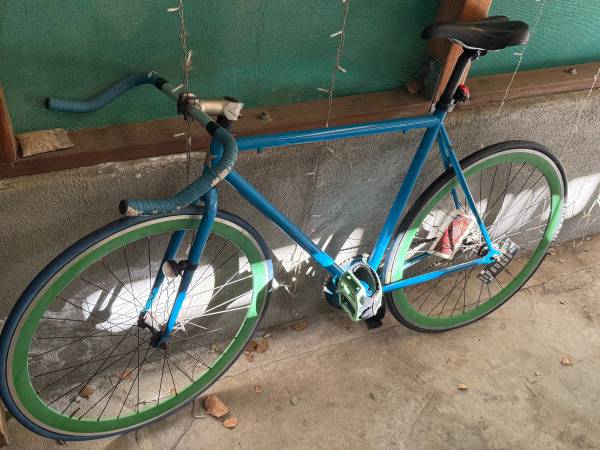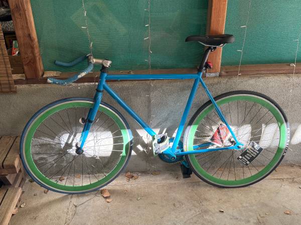 Blue Fixed Gear Bicycle, 2 Ozone Hybrid bikes, 1 Boulder Hybrid Blue frame with green rims, single speed. Fixed Gear for $150 OBO Fixed gear with a flip rear hub Big shot frame 88mm custom wheels No...