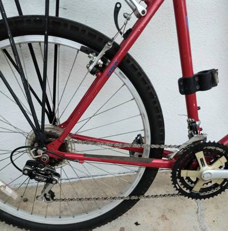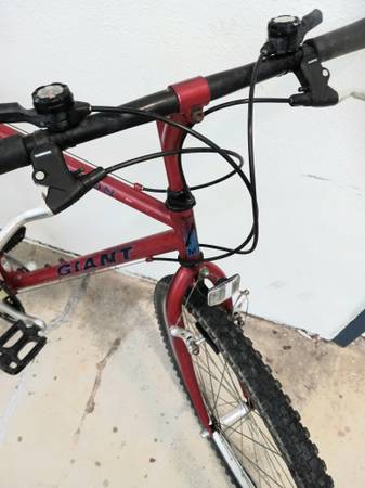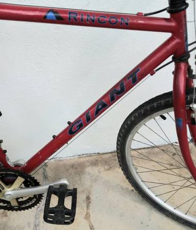 Hello..we are selling a Giant brand Rincon model Mountain bike, rigid suspension, steel frame ,18 speed,Shimano components, with back cargo rack ,bike is in great condition always garaged, tires are dual uses on and off raod great condition,26 inch aluminum rims, quick release rims,aluminum cranks, is medium frame size so for a rider 5ft 5in to 5ft 11in,,adjustable seat post, cloud 9 seat in great condition comfortable, Kenda tires 26x1.95 dual use to 65 psi pressure,bike is solid and working great..
