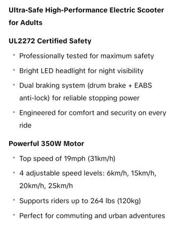 Electric Scooter 19mph, light weight. see attached pictures for more information