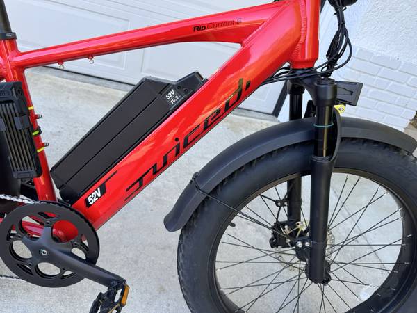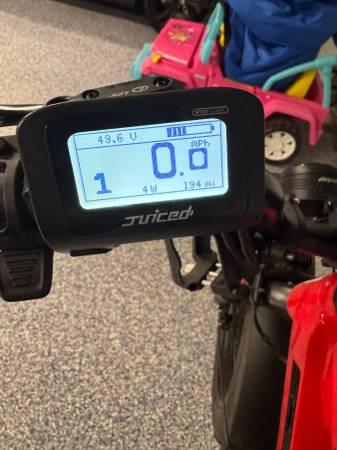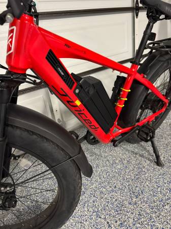 I purchased this bike directly from Juiced.com for $2,400. It has less than 200 miles on it. Always kept in the garage. This has a 1000W motor which is one of the most powerful you can get. With a strong motor you can easily get up any hill or take a break and let the bike do the work. This bike will hit 30mph when using the motor has over 70 miles of range. Everything works perfectly, needs nothing. Tires have lots of tread. I have some accessories I am including with the bike: