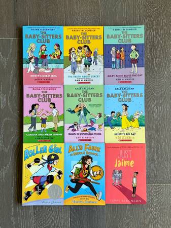 Like-New/Excellent Condition Graphic Novels Set of 9 (Babysitters Club, Roller Girl, All's Faire in Middle School, Just Jaime) PICKUP ONLY + PRICE IS SET ($45 for ALL books) *Text number for...