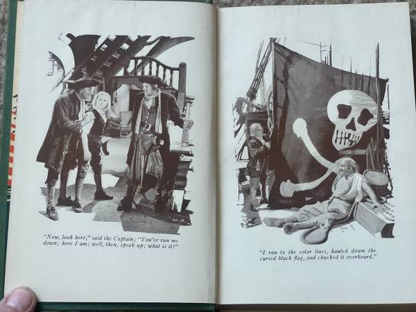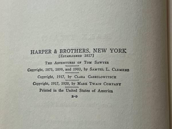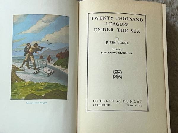 These three vintage books include 'The Adventures of Tom Sawyer' by Mark Twain, 'Treasure Island' by R.L. Stevenson, and '20,000 Leagues Under the Sea' by Jules Verne. They’re in excellent condition...