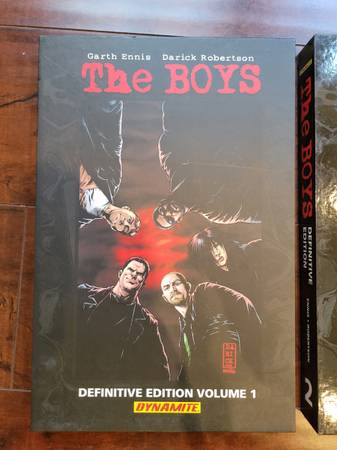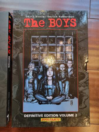 For sale are the first two volumes of THE BOYS Definitive Editions. These are thick hardcovers in slipcases. In great condition. A great gift for fans of the show on Amazon.