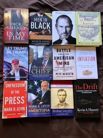 Political science books... One Italian cookbook... Steve Jobs authorized autobiography... "Men In Black" is signed by the author... Most are brand new... $50 for all...